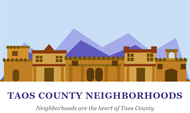 We think that’s important, and that’s why we’ve formed Taos County Neighborhoods (TCN) to educate residents about opportunities for and challenges to our neighborhoods, and help neighborhoods organize for discussion and action. TCN includes representatives from the Neighborhood Associations of Lower Des Montes, Upper Las Colonias, Stagecoach, and Ranchos de Taos, but we welcome anyone in Taos County.